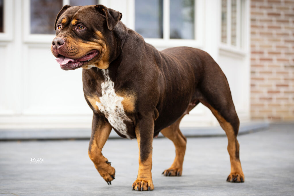 BBK’s Freya est une superbe femelle qui arbore un magnifique pelage tricolore chocolat ticked, mélange harmonieux de chocolat, de beige et blanc avec des petites taches chocolat dans le blanc de son poitrail.